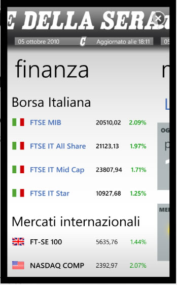 Scaricabile dal Marketplace, Corriere della sera.it è l’applicazione ufficiale del giornale per Windows Phone 7. Il software è gratuito ma la consultazione delle notizie lo è per 3 mesi come dice il messaggio di avviso una volta installato.