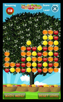 Graficamente mostra un albero pieno di frutti e la quantità dei diversi frutti è data dal livello di difficoltà più vai avanti e più frutti diversi troverai sull’albero. Lo scopo del gioco e di “raccogliere” tutti i frutti tramite tapp, con una condizione, che per raccoglierli devono esserci almeno 2 frutti uguali adiacenti. In alto a