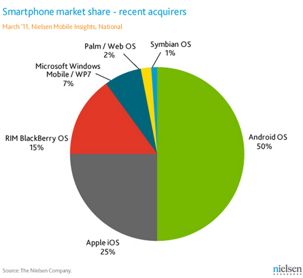 Nielsen ha pubblicato alcune ricerche di mercato che dimostra che Windows Phone (tra cui Windows Mobile e Windows Phone 7, con le vendite di WM che saranno minime oggi) interessa al 7% degli utenti che hanno intenzione dei cambiare smartphone.