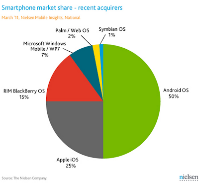 Ciò è in netto contrasto con RIM, che ha visto in 3 mesi un calo significatico passanto dal 27% al 22% nel marzo 2011.