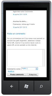 P.s. Vi seguo anche da Android e un mio amico da iphone, se trovo qualche wp7 user in futuro faccio subito pubblicitá :D