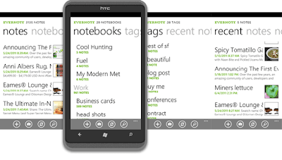 L’applicazione ufficiale Evernote è finalmente disponibile sul marketplace di Windows Phone 7. Come possiamo vedere dalla foto, lo sviluppo di questa applicazione utilizza completamente l’interfaccia Metro di Windows Phone.