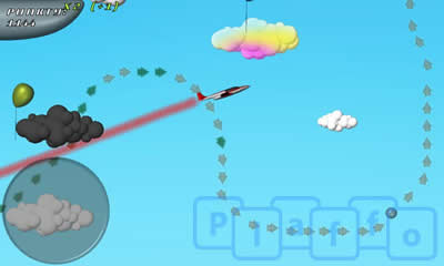 Graficamente molto semplice, potrebbe essere migliorato soprattutto nelle rifiniture. In questo gioco non bisogna sfidare nessun nemico ma occorre volare lungo la traiettoriadisegnata sul livello, passando a quello successivo nel minor tempo possibile. Il punteggio sarà discriminante ai fini di passare al livello successivo. Lungo il volo troveremo dei palloncini sospesi nell’area che possiamo farli esplodere facendo fuoco contro di loro. Il gioco si sviluppa in landscape, nella parte bassa dello schermo possiamo vedere, a sinistra, il gamepad formato da una closh, a destra un tasto virtuale che ci permette di sparare. Buono lo stile del gioco, anche se la giocabilità non risulta ottimale, infatti il controller ha uno spazio limitato circoscritto da un area ben definita oltre il quale l’aereo risulterà incontrollato.