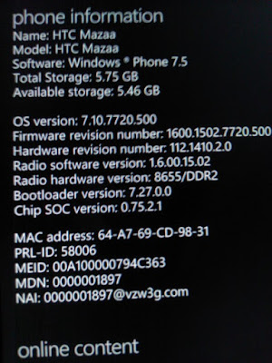 Come possiamo vedere dallo screenshot sotto, il dispositivo utilizza la build RTM di Mango: