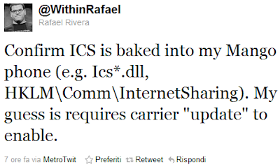 La vesione del sistema operativo, su cui è presente questa funzione è la 7720.68, quindi la stessa che hanno installato gli utenti con la guida pubblicata sopra (Mango RTM). Conferme arrivano anche da Rafael Rivera, sviluppatore del team ChevronWP7, che tramite il proprio canale twitter ha pubblicato questo messaggio: