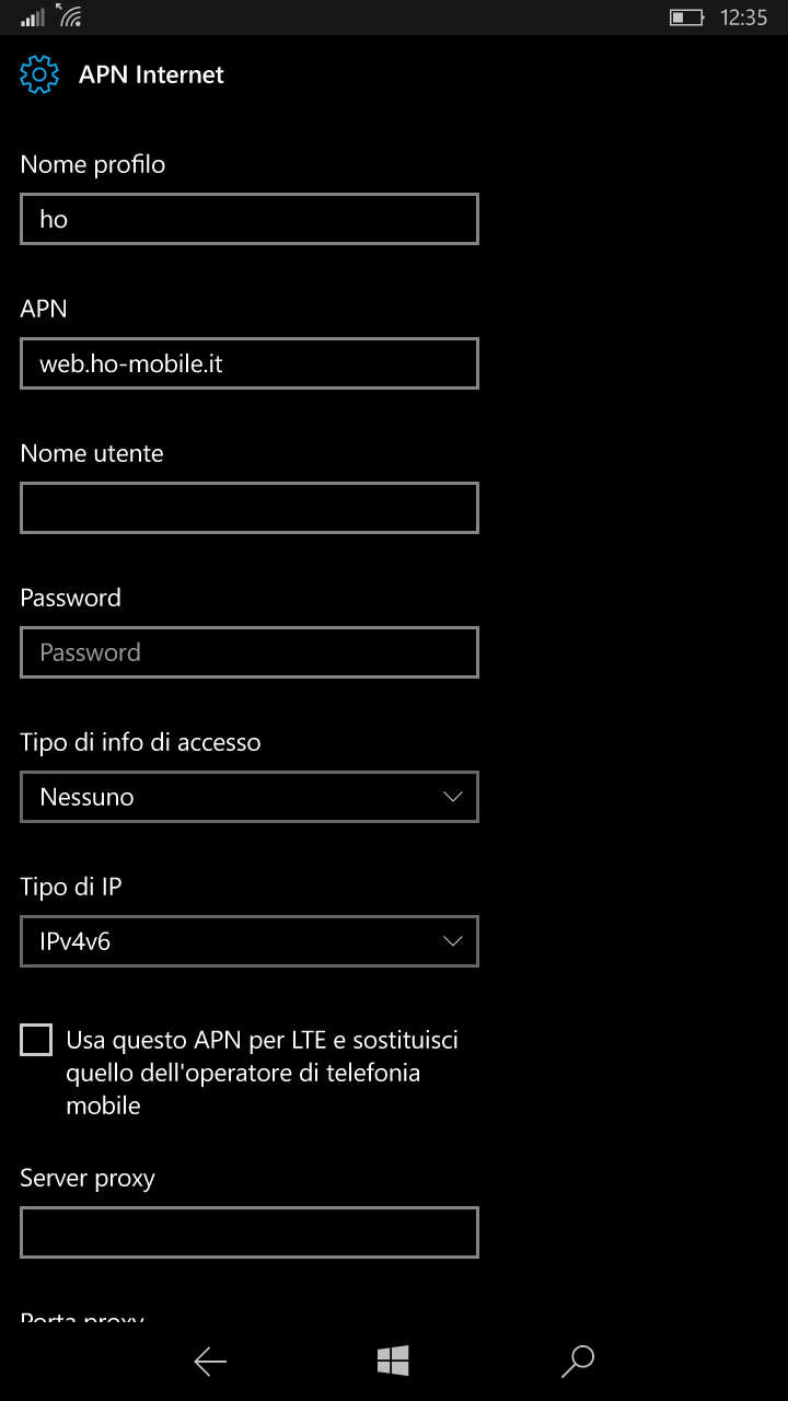 A me mi hanno chiamato ed hanno detto che non è compatibile coi Lumia. Mi diedero pure un altro APN, che però non mi faceva neanche connettere alla rete. Alla fine la connessione non è male, l’offerta è buona ma l’hotspot non va. Non so se su WM10 sia diverso, ma a me l’oeratore disse vai in APN Hotspot ed inserisci “così”. Però su Windows Phone 8.1 c’è solo la voce APN Internet ed APN MMS (o SMS). Puoi controllare se su WM10 c’è proprio la voce APN Hotspot?